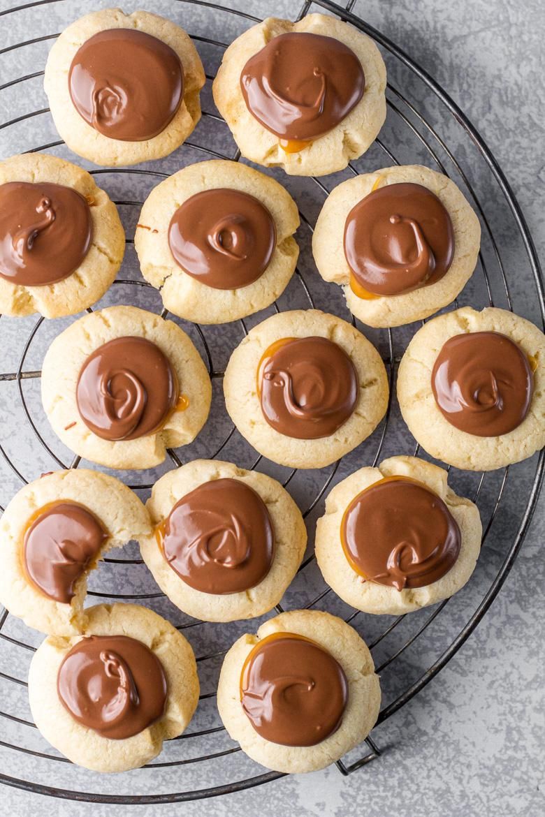 Twix Thumbprint Cookies Simply Bake February 12, 2021 368 Deliciously buttery, melt-in-your-mouth shortbread cookies that are filled with chewy caramel, and topped with milk chocolate. A thumbprint cookie version of the Twix chocolate bar! Get the recipe on Marsha's Baking Addiction! See the full directions on my site caramel chocolate cookies