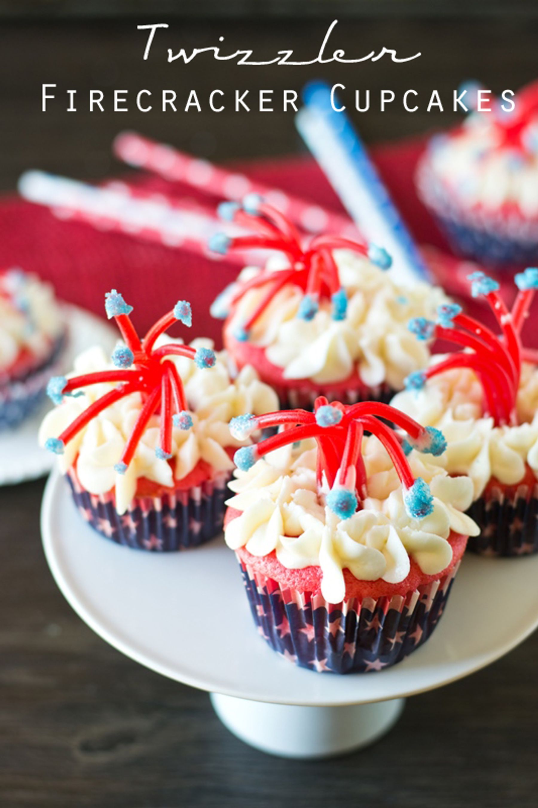 Make a bang at your July 4th party with these Twizzler Firecracker Cupcakes! These patritotic treats are a fun, edible craft for kids to make.