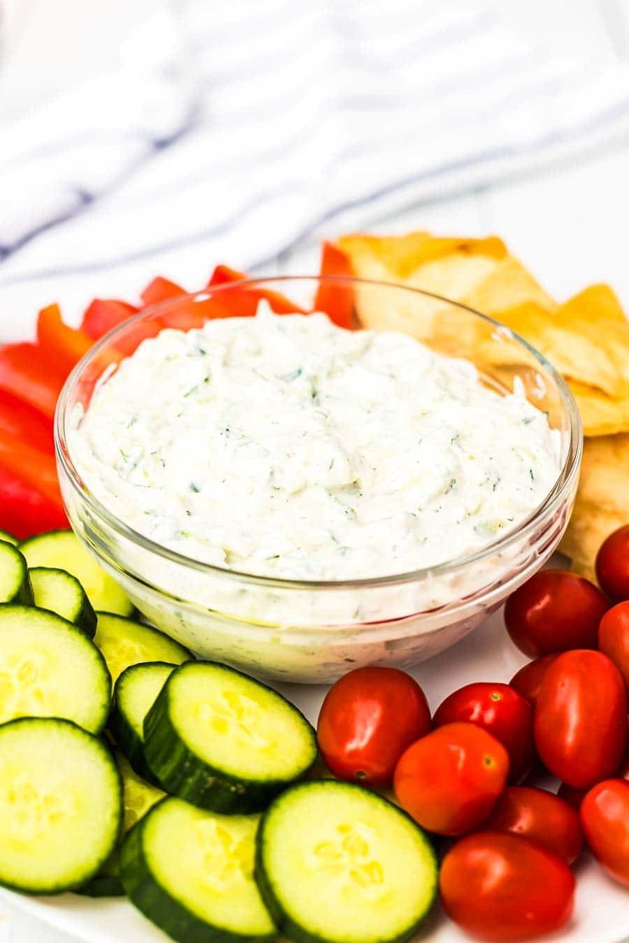 Tzatziki Sauce is a delicious yogurt and cucumber sauce that is famous at Greek restaurants! It's made with yogurt, cucumber, fresh herbs (like mint and dill), garlic, lemon, and salt! It's refreshing as a chilled sauce, dip or spread. We love to serve it with our favorite Greek Chicken Skewers or with fresh vegetables.