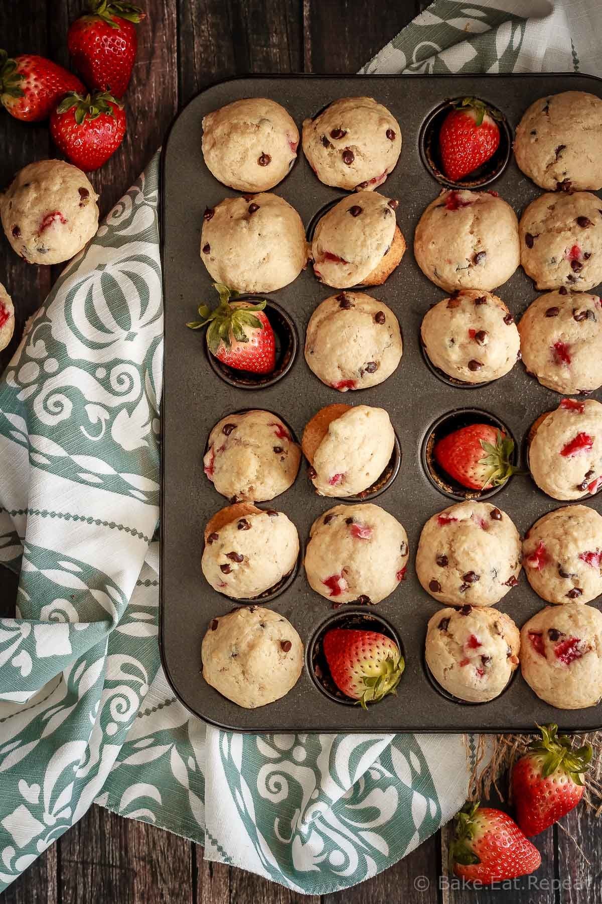 Mini Strawberry Chocolate Chip Muffins