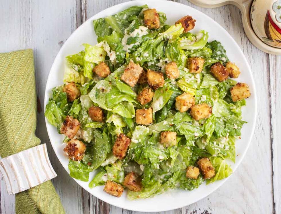 Wasabi Caesar Salad with Sesame-Tofu Croutons