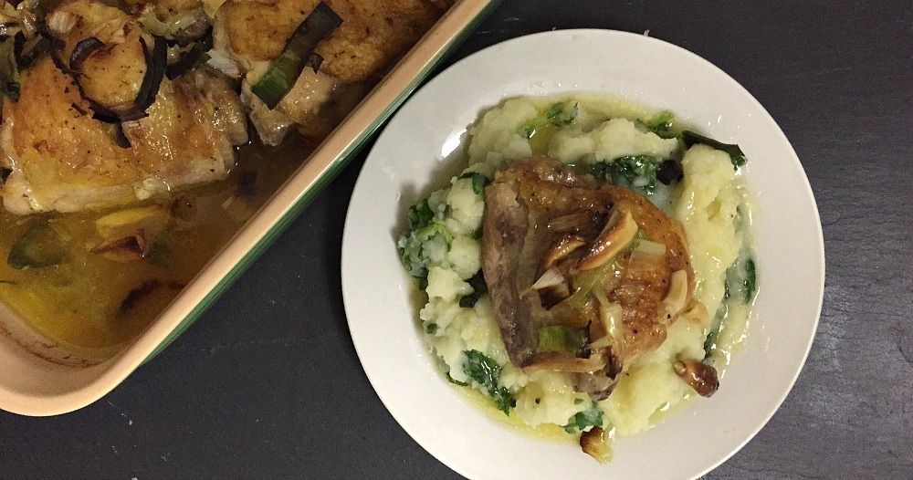 Main Dishes Baked Garlic Chicken Thighs Recipe with Leeks and Kale Mashed Potatoes deannaunderwoodJan 25, 2018 74