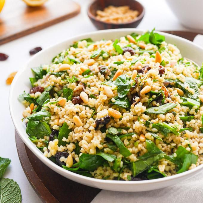 Bulgur Wheat Salad with Spinach, Pine Nuts & Raisins