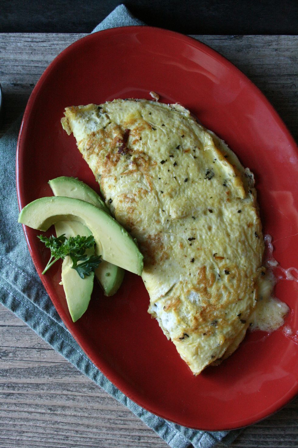 Simple Ham & Cheese Omelet Cooked in Basil Butter