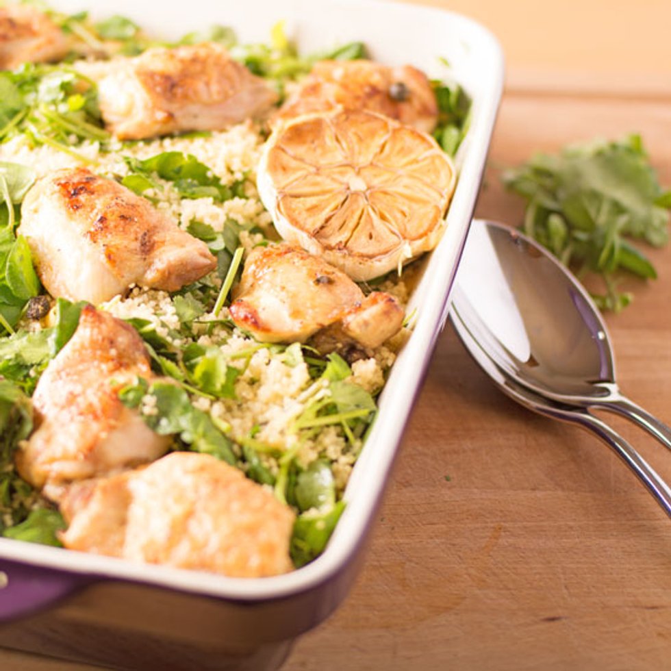 Roast Chicken with watercress and cilantro