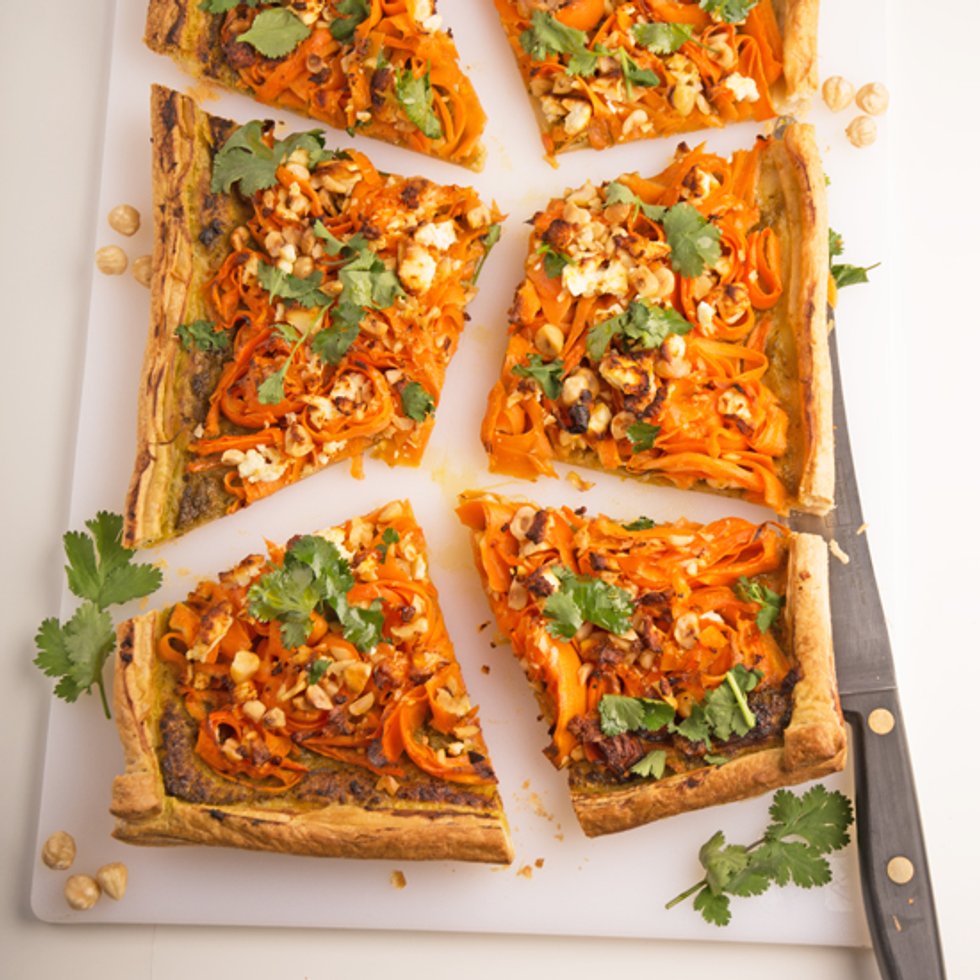 Roasted carrot and hazelnut tart