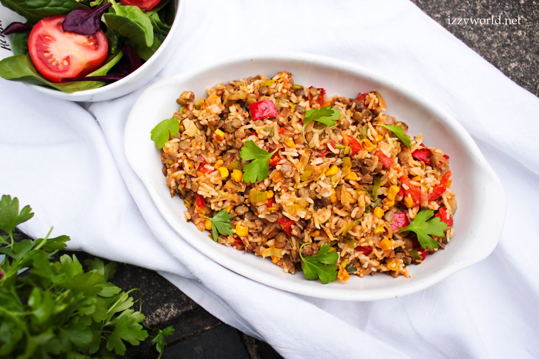 Lentils with vegetables and rice