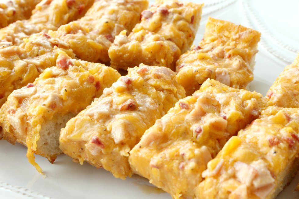 Gooey Pimento Cheese & Ham Crostini
