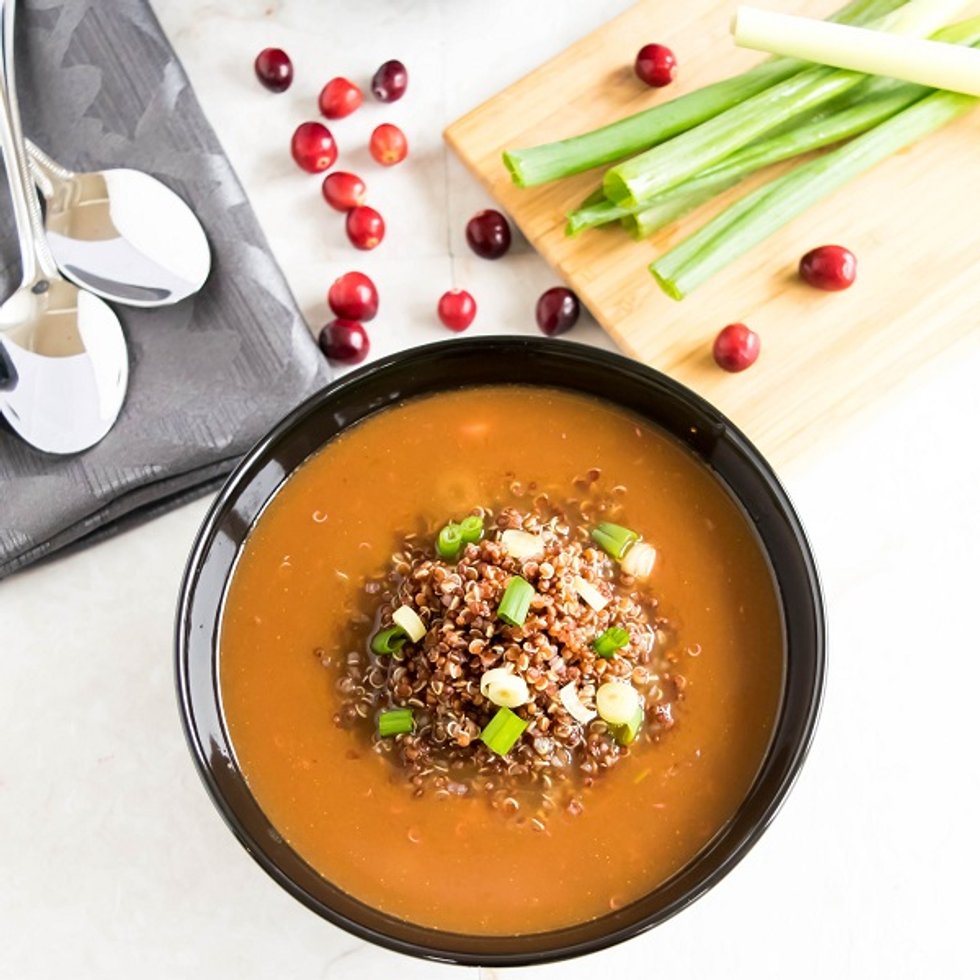 Red quinoa cranberry arugula soup