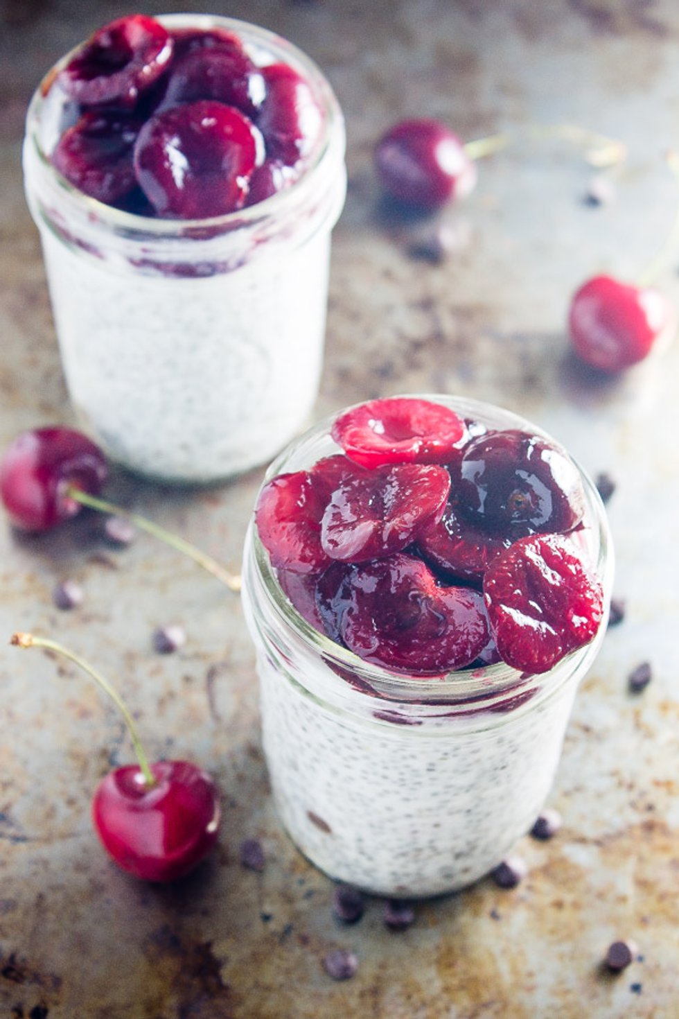 Chocolate Chip Chia Pudding with Roasted Cherries