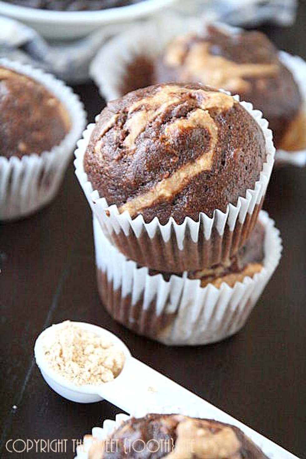 Skinny Chocolate Swirl PB2 Banana Muffins