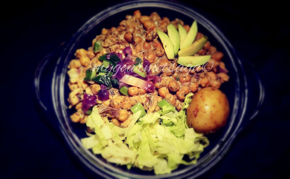 Chickpea in White Mushroom sauce with Stir fry Red Cabbage