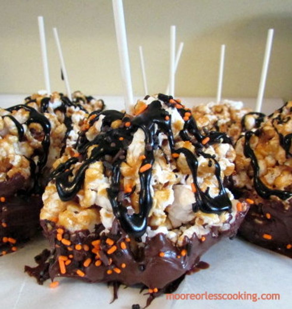 Chocolate Covered Caramel Popcorn Balls
