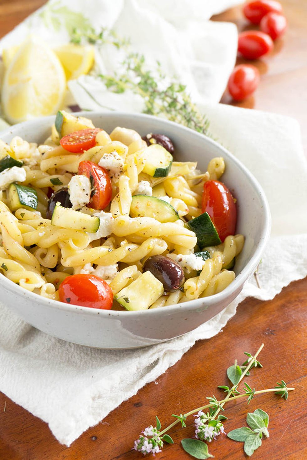 Lemon + Herb Greek Pasta Salad with Zucchini