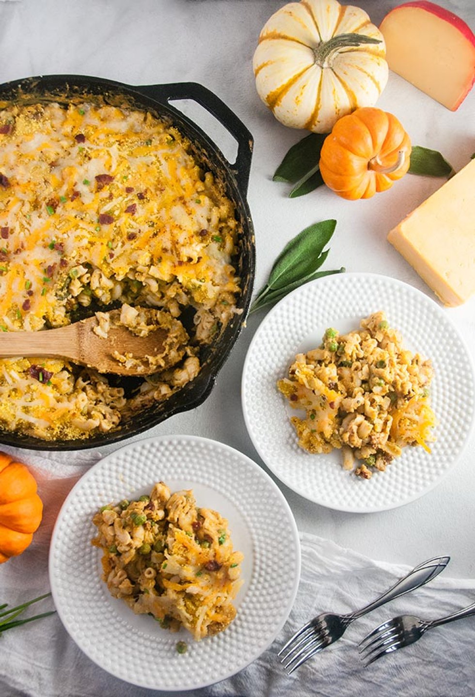 Pumpkin Macaroni and Cheese with Pancetta and Peas