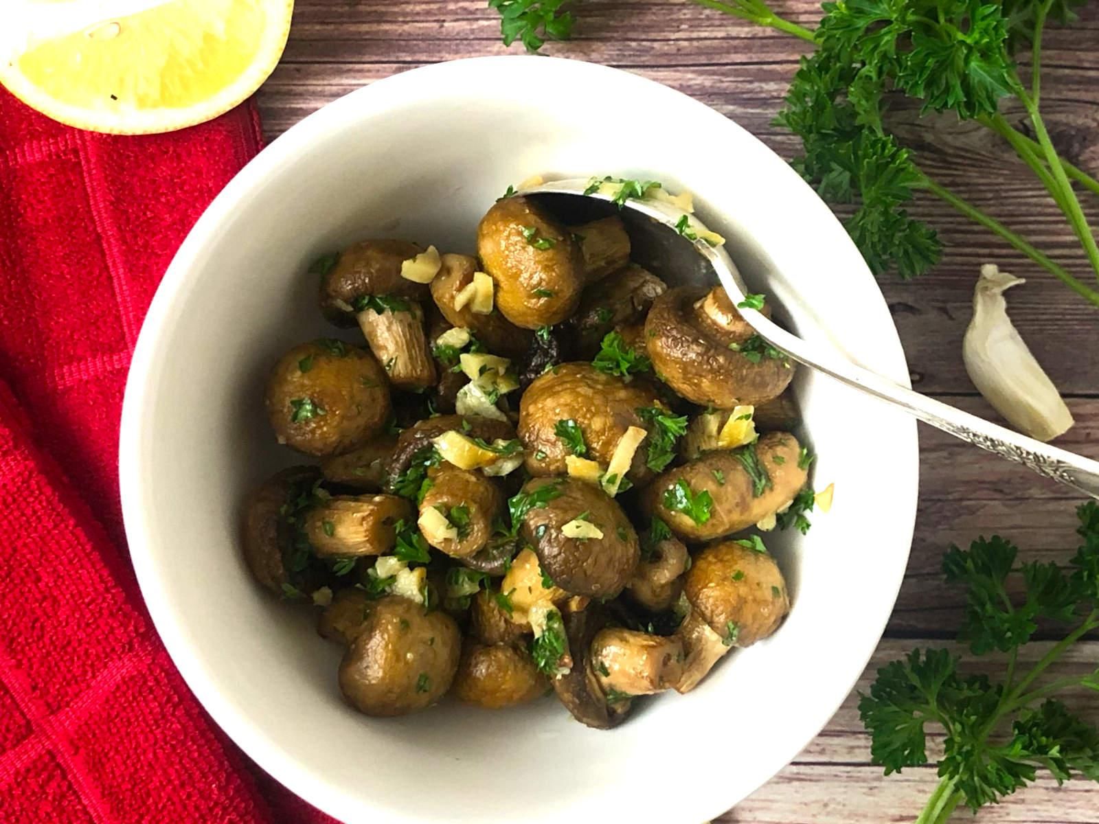 Air Fryer Mushrooms with Roasted Garlic and Parsley