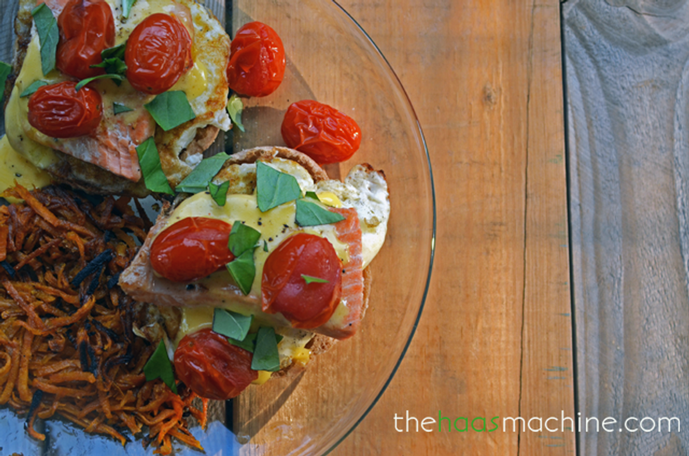Salmon Eggs Benedict with Roasted Tomatoes