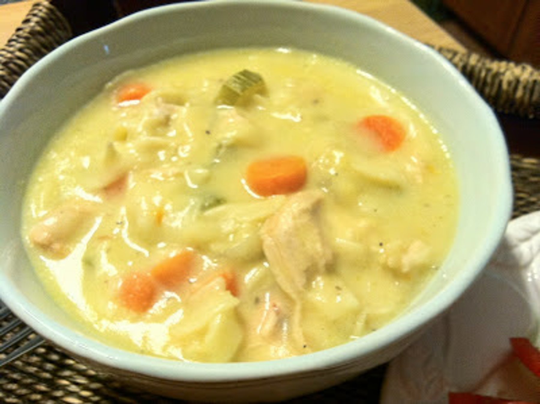 To start I made a super easy take on a "Grandma" classic: Chicken and Noodles. It has all the creamy, comforting goodness of a long simmered stew, but this baby is made in a FLASH! I also added carrots, onion and celery which you could omit but I think adds not only to the taste but nutritional value. I opted for dry egg noodles, which I almost always have on hand, but feel free to sub your favorite frozen noodle.