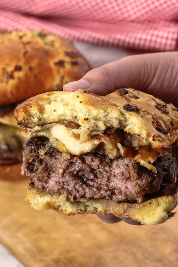 This Pierogie Burger is an incredible mash up of two delicious foods - a juicy cheeseburger and pillowy soft pierogies topped with sweet, caramelized onions. It's a match made in heaven and I'm showing you how to make it.