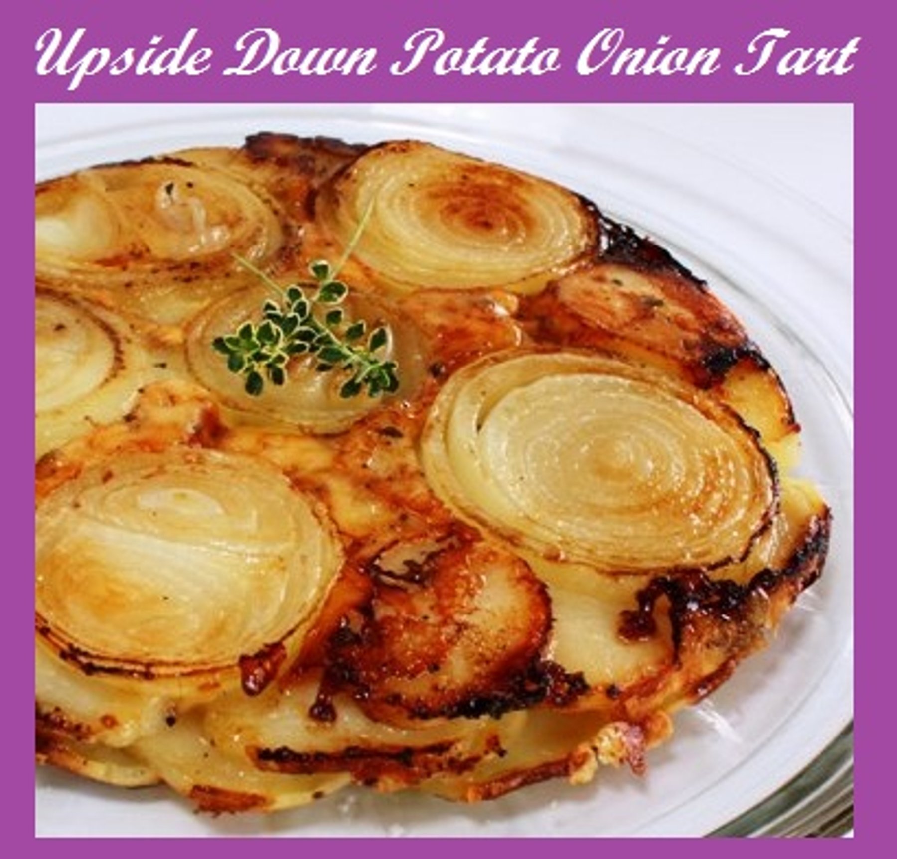Top the onion with the potato mixture and bake for 45 minutes or until golden brown and cooked through. Turn upside down to serve.