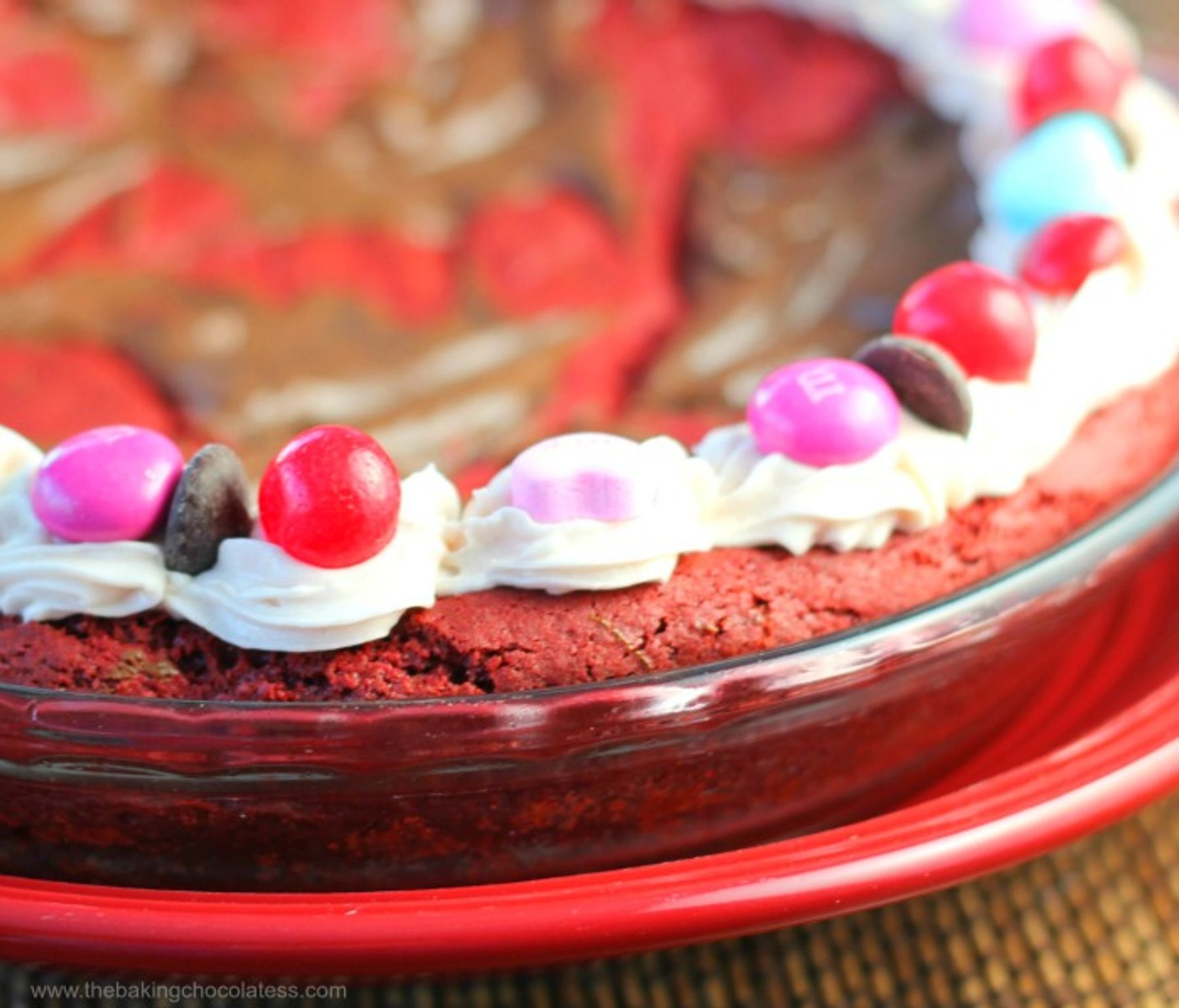 Would ya check out those creamy, chocolate hazelnut swirls baked into that red velvet cookie pizza! *ShaZam!* This fun Valentine Red Velvet Party Blast Cookie Pie is definitely party-worthy and drool-worthy at the same time!