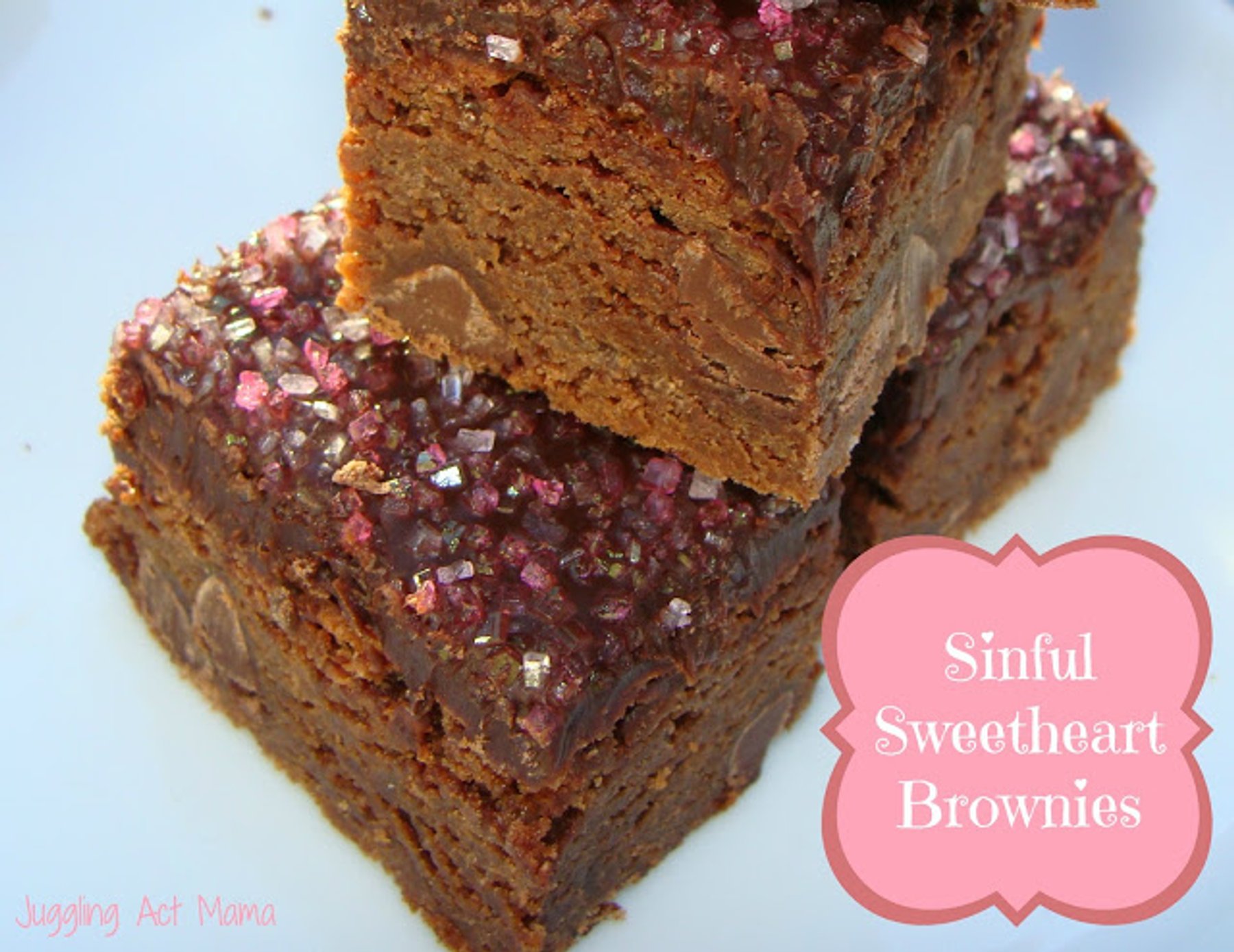 These thick decadent fudgy brownies with gooey chocolate ganache, all topped with a layer of pretty pink sugar are perfect for Valentine's Day.