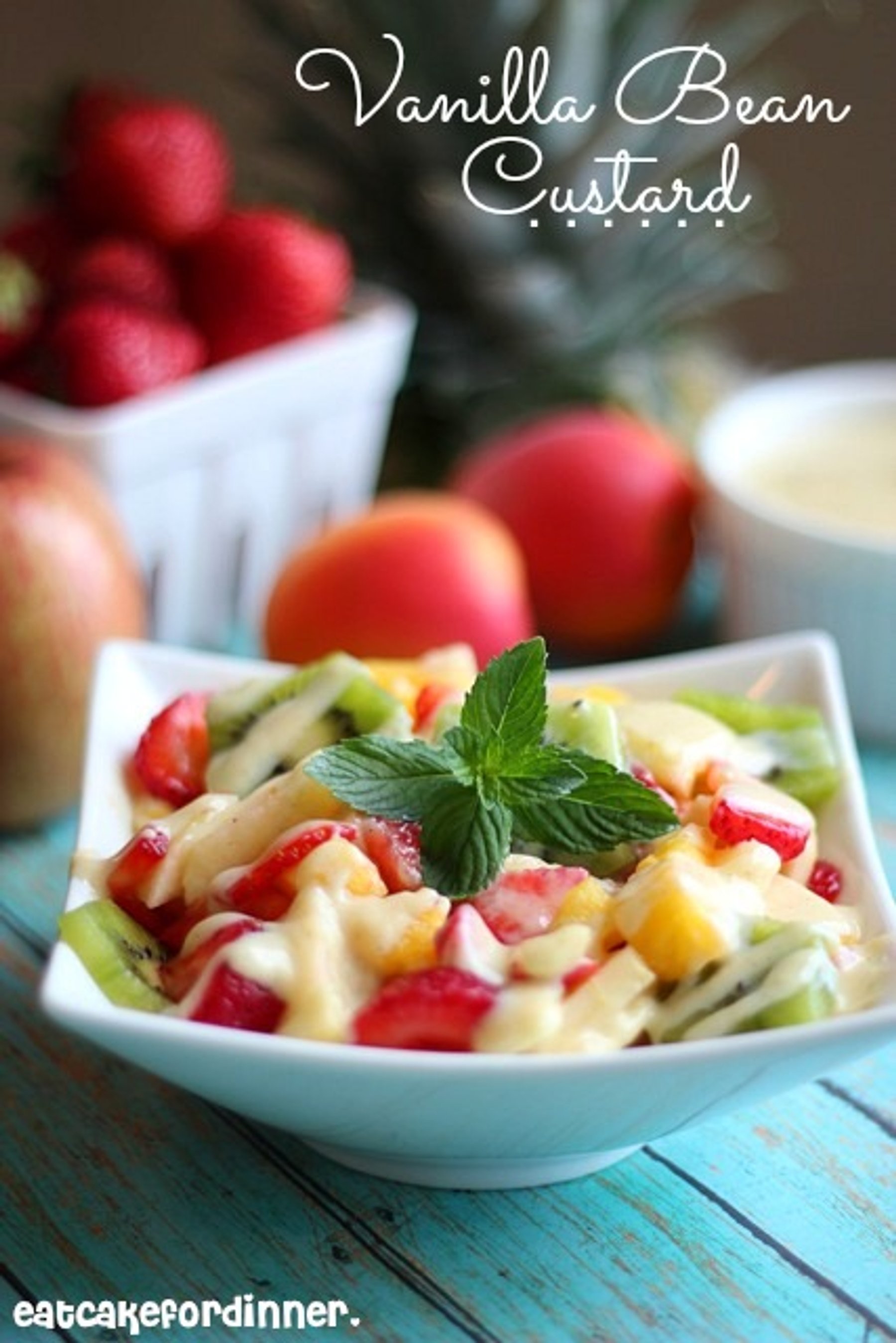 A rich and creamy vanilla bean custard sauce that is amazing drizzled over fresh fruit, a warm brownie, strawberry shortcake or a banana blondie. Get the picture?
