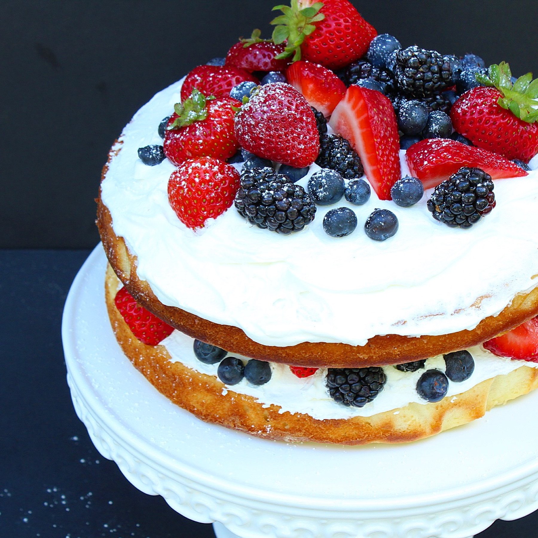 This vanilla berry layer cake is light and fruity and makes the perfect addition to your summer picnic.