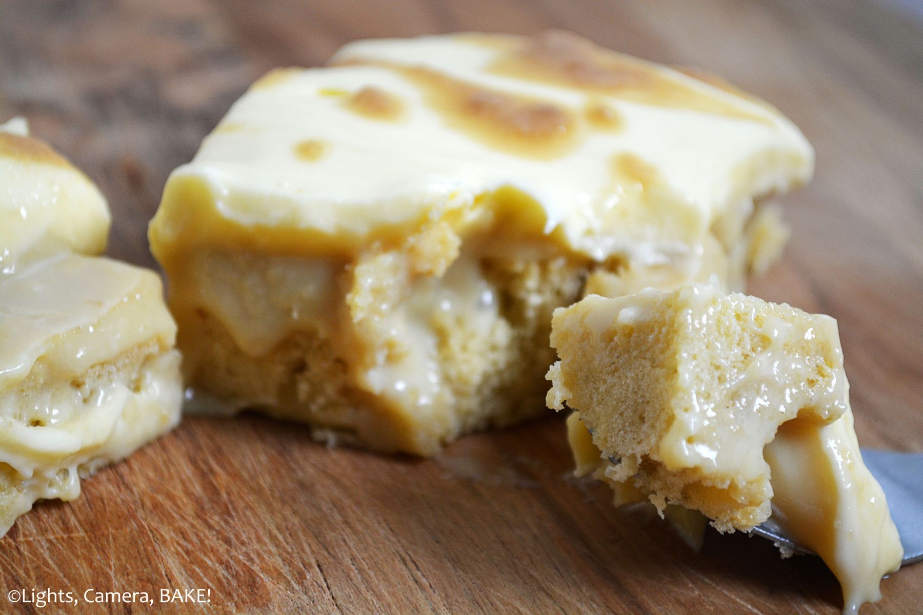 Vanilla Caramel Poke Cake is a soft and fluffy cake with holes poked throughout that is then smothered in a homemade caramel, topped with cream cheese icing and drizzled with salted caramel.