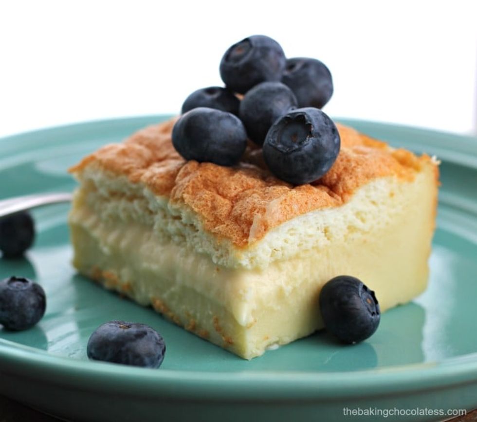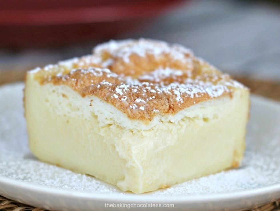 Hey Vanilla Cake lovers! Here’s a wonderful dessert that will make you swoon with each lovely, vanilla bite! Supernatural forces come together while this dessert bakes to transform it to separate into three layers of heaven. The top layer is a soft cake like an eclair or angel cake texture, followed by a creamy custard layer that sits on a firm gelatin-like layer. Ta-daaa!! Now that’s some heavenly MAGIC!