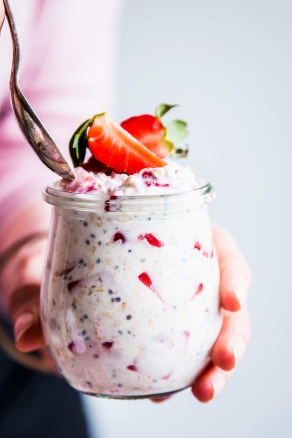 Vanilla Strawberry Overnight Oats are an easy make ahead breakfast recipe for spring and summer. You can meal prep them in just 10 minutes!