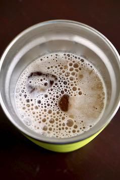- In a mason jar, add in the half and half, vanilla and maple syrup. Screw on the lid and shake the mixture really good until well mixed.