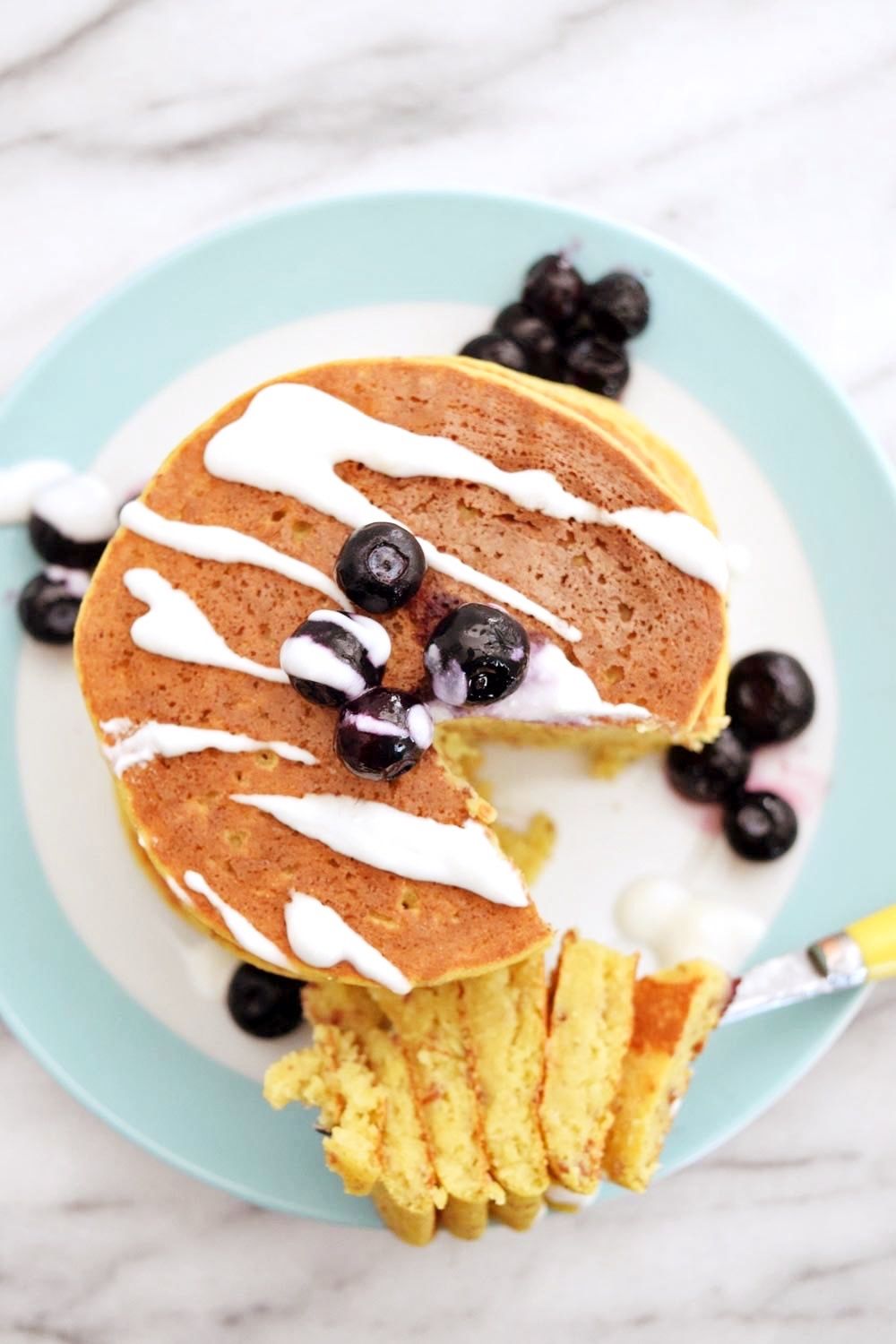 Vegan 5 ingredient pancakes are soft, sweet, and so simple! This is my favorite pancake recipe, and it's perfect for customizing with your favorite toppings and flavors. They're made with just 5 healthy ingredients, gluten free, grain free, and naturally sweet!