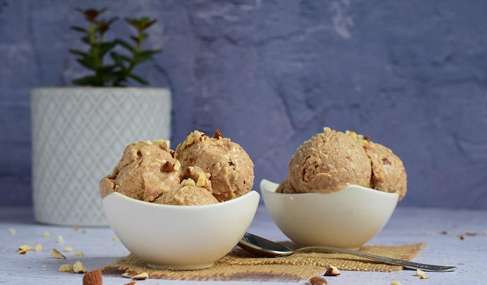 To make this Vegan Almond Coconut Ice Cream amazing recipe you'll need 3 basic ingredients, coconut milk, liquid sweetener (our choice was maple syrup), and nut butter.