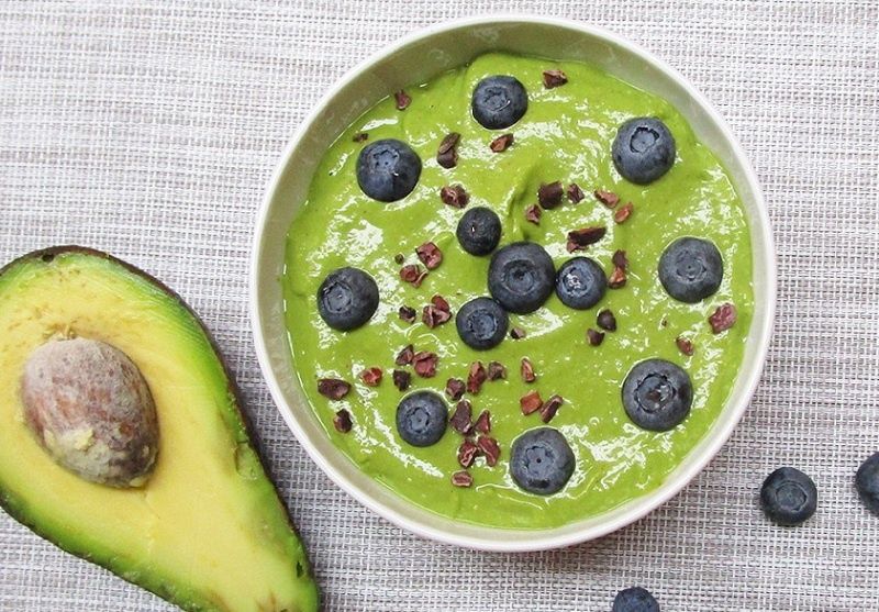 Vegan Avocado Banana Green Smoothie Bowl With Blueberries