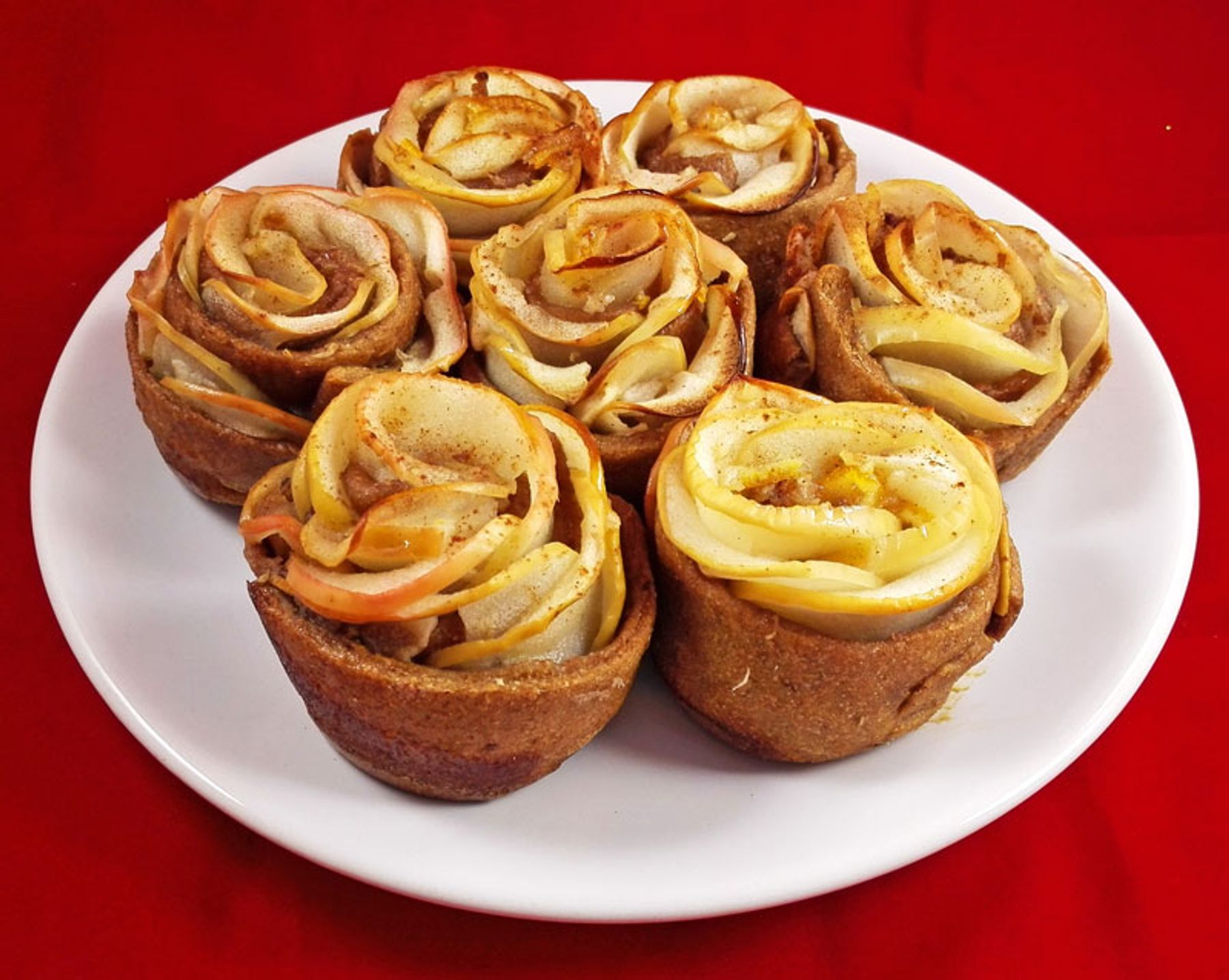 Here’s a delicious vegan gluten-free baked apple rose recipe. They look very cute and they are great for Valentine’s Day. I recommend you to use (vegan) puff pastry, but in case you don’t have it, you can try this homemade oat flour dough instead. Not everyone like it this way though, but I certainly do. They are delicious with some ice cream. The recipe makes 6-8 roses depending on their size.