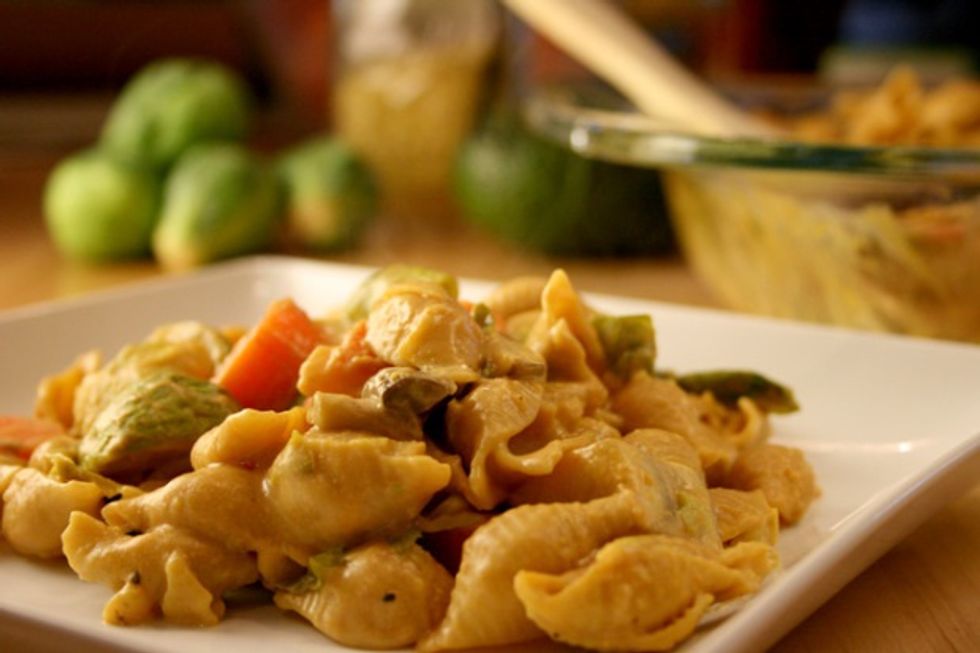 A spicy vegan cheese sauce made from nutritional yeast and hot sauce make this mac and cheese really stand out. Toss in some mushrooms, Brussels sprouts, and carrots for a hearty, healthy meal. If you've never tried nutritional yeast, THIS is the recipe to start with! It's so creamy and perfectly cheesy (without any cheese at all).