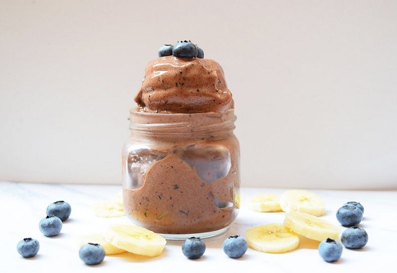 Here is one amazingly delicious Chocolate Blueberry Ice Cream we like to call No-Guilt ice cream. :) Amazing chocolate flavor with fresh blueberries is what makes this ice cream absolutely stunning.
