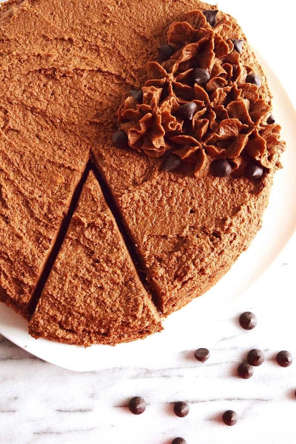 This vegan chocolate cake is full of deep, rich chocolate flavor, and smothered in sweet, creamy, chocolate fudge frosting! Made in just 1 bowl with 6 healthy ingredients, totally gluten free and fruit sweetened.