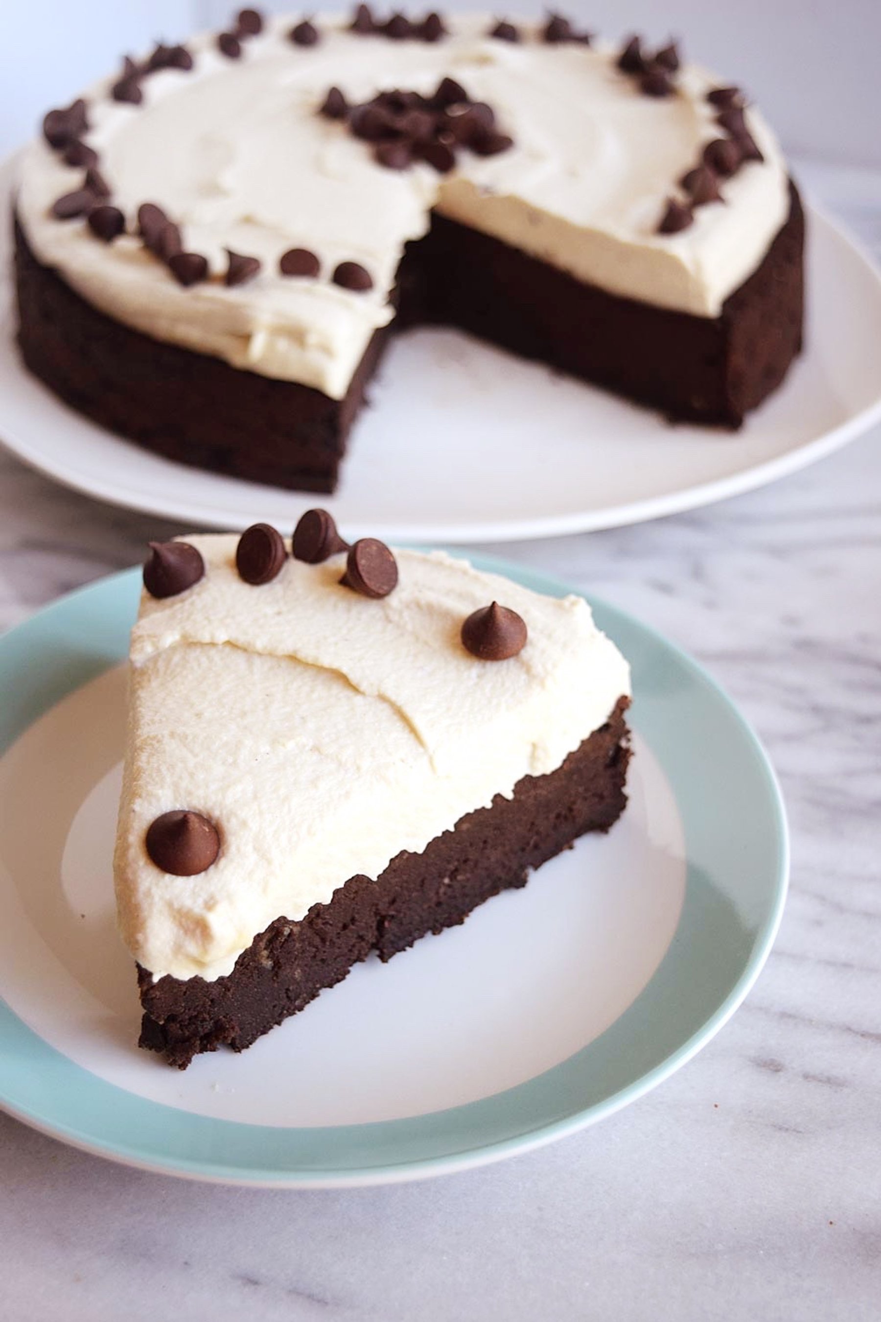 Soft, rich cake topped with smooth and luscious frosting. This vegan chocolate cake with cream cheese frosting is irresistible! Made with healthy ingredients, gluten free and naturally sweetened.