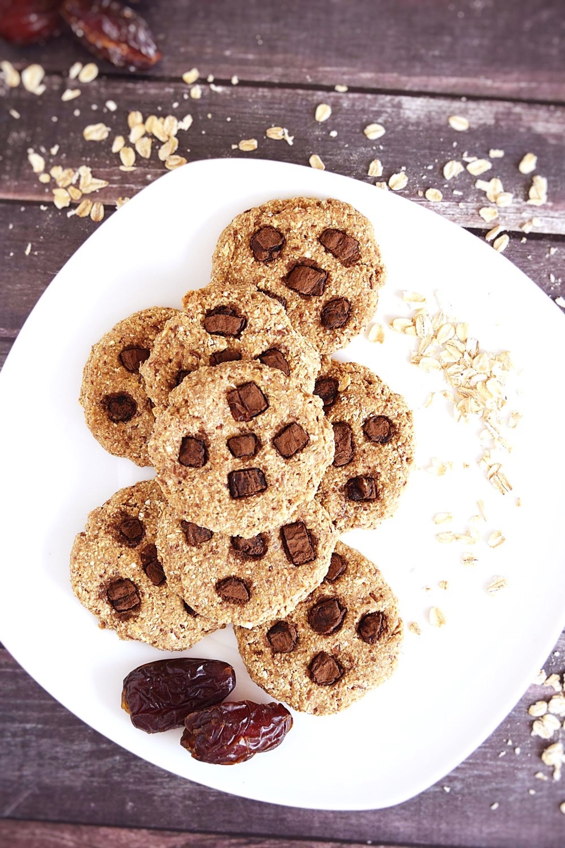 2 flax eggs - 2 tbsp ground flaxseed in a small bowl with 6 tbsp water, set in the refrigerator for 15 minutes prior to mixing into the cookie dough