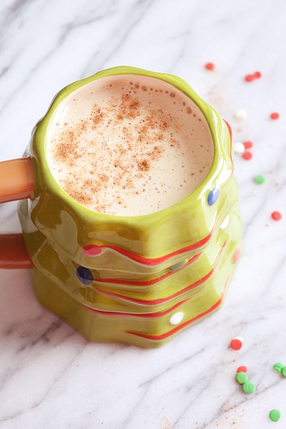 Vegan Christmas nog is thick, rich, and so creamy! Made with just a few healthy ingredients, it's the perfect decadent drink for all your fun holiday activities.