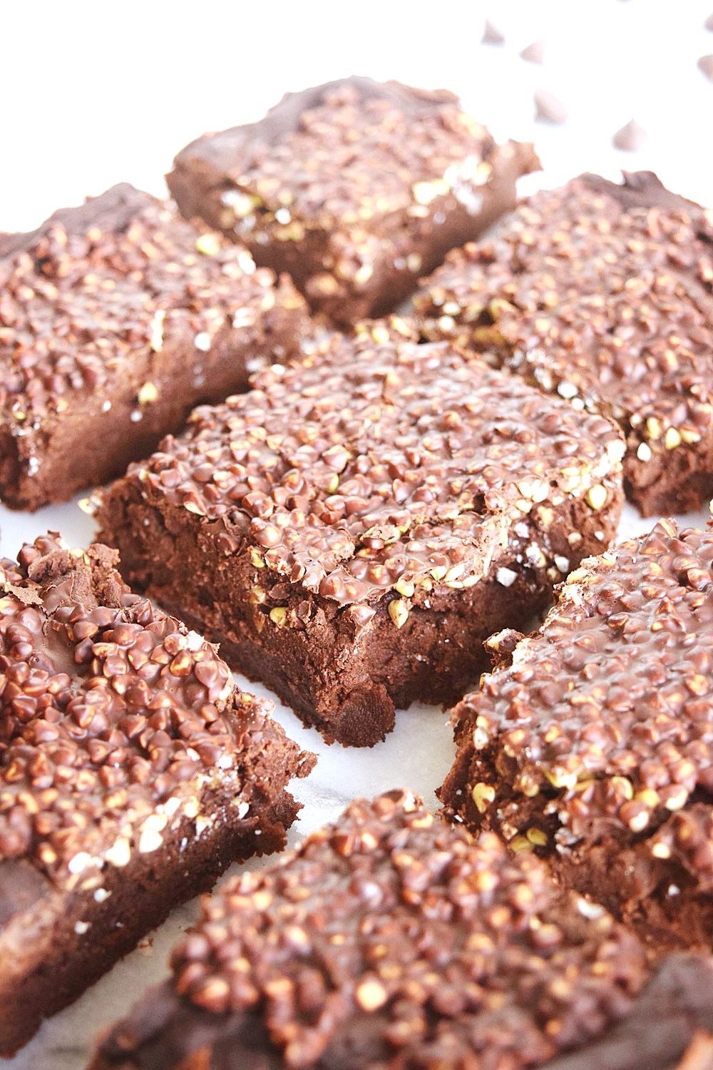 Rich, fudgy brownies topped with a layer of crunchy chocolate! You'd never guess these vegan crunch brownies are healthy, gluten free and naturally sweetened.