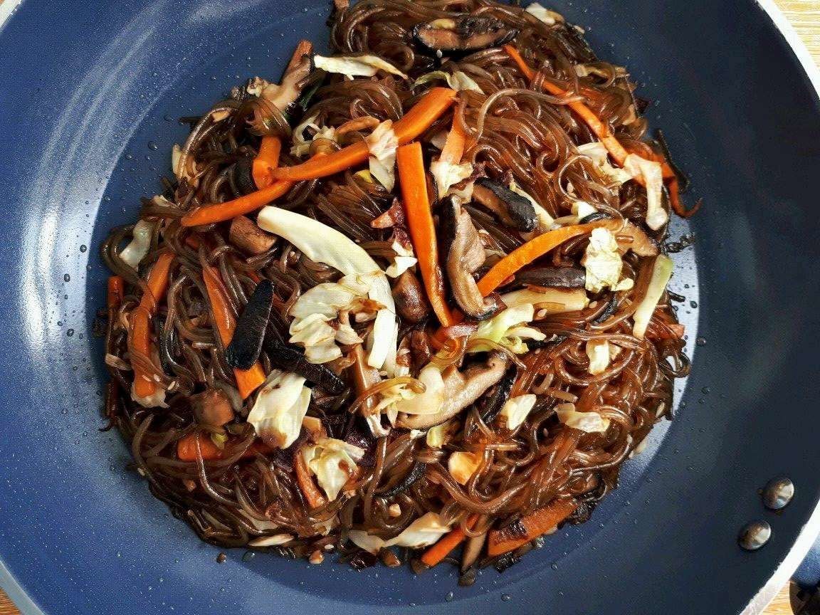 Vegan Japchae saodehOctober 27, 2020 88 https://theodehlicious.com/2020/10/14/vegan-japchae-recipe/ Japchae is a vegan Korean glass noodles recipe that is mixed with vegetables, and seasoned with soy sauce and sesame oil.4Try itSee the full directions on my site