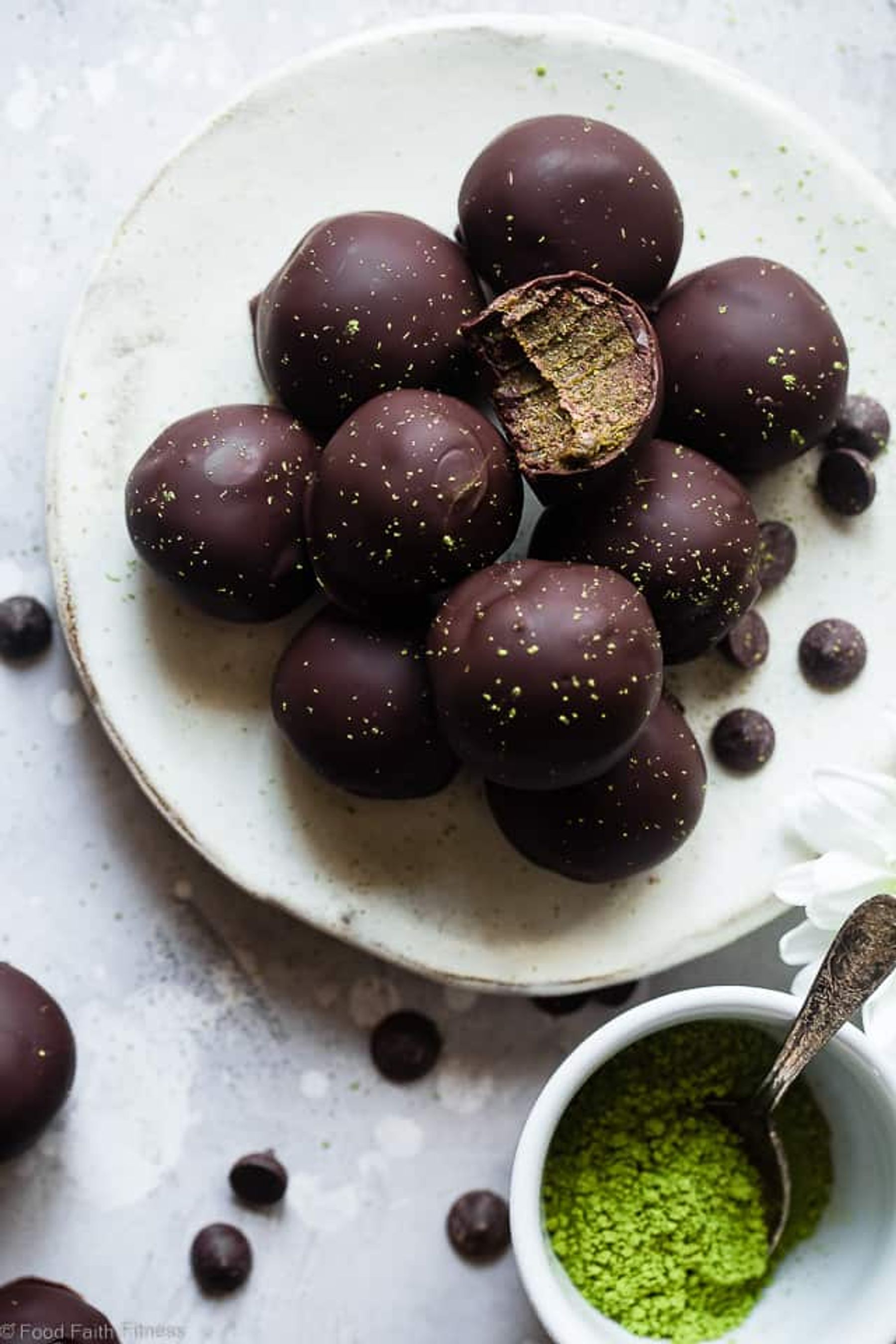 Vegan No Bake Date Energy Protein Balls with Matcha