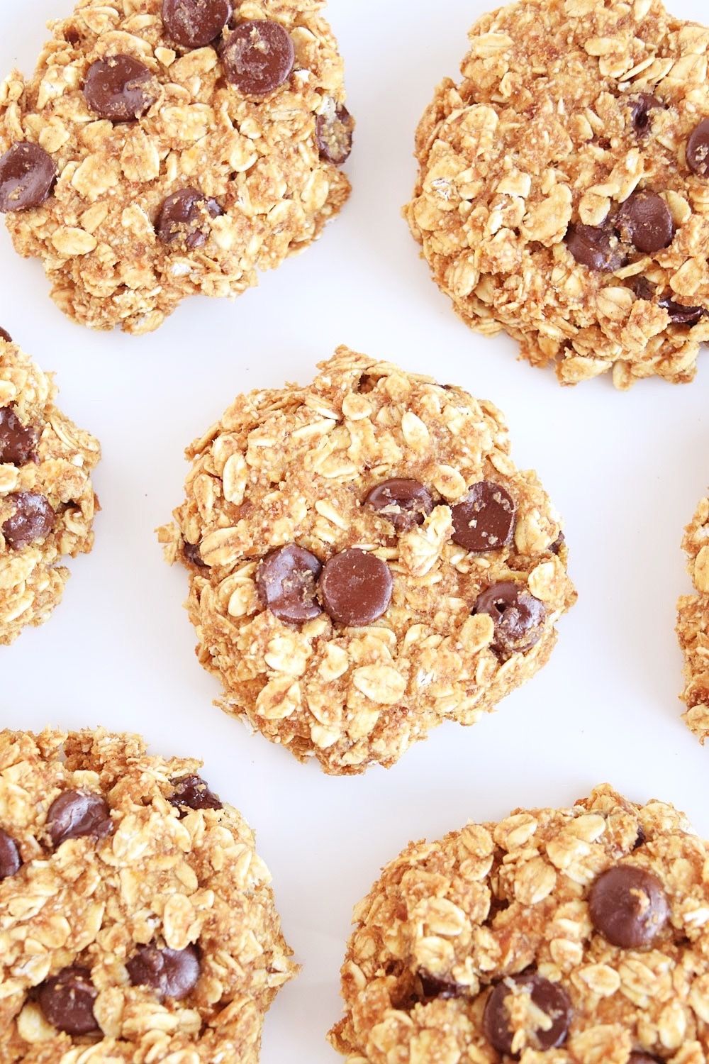 Perfectly sweet and super chewy, these vegan oatmeal chocolate chip cookies are made with just 3 healthy ingredients! They're gluten free and totally fruit sweetened.