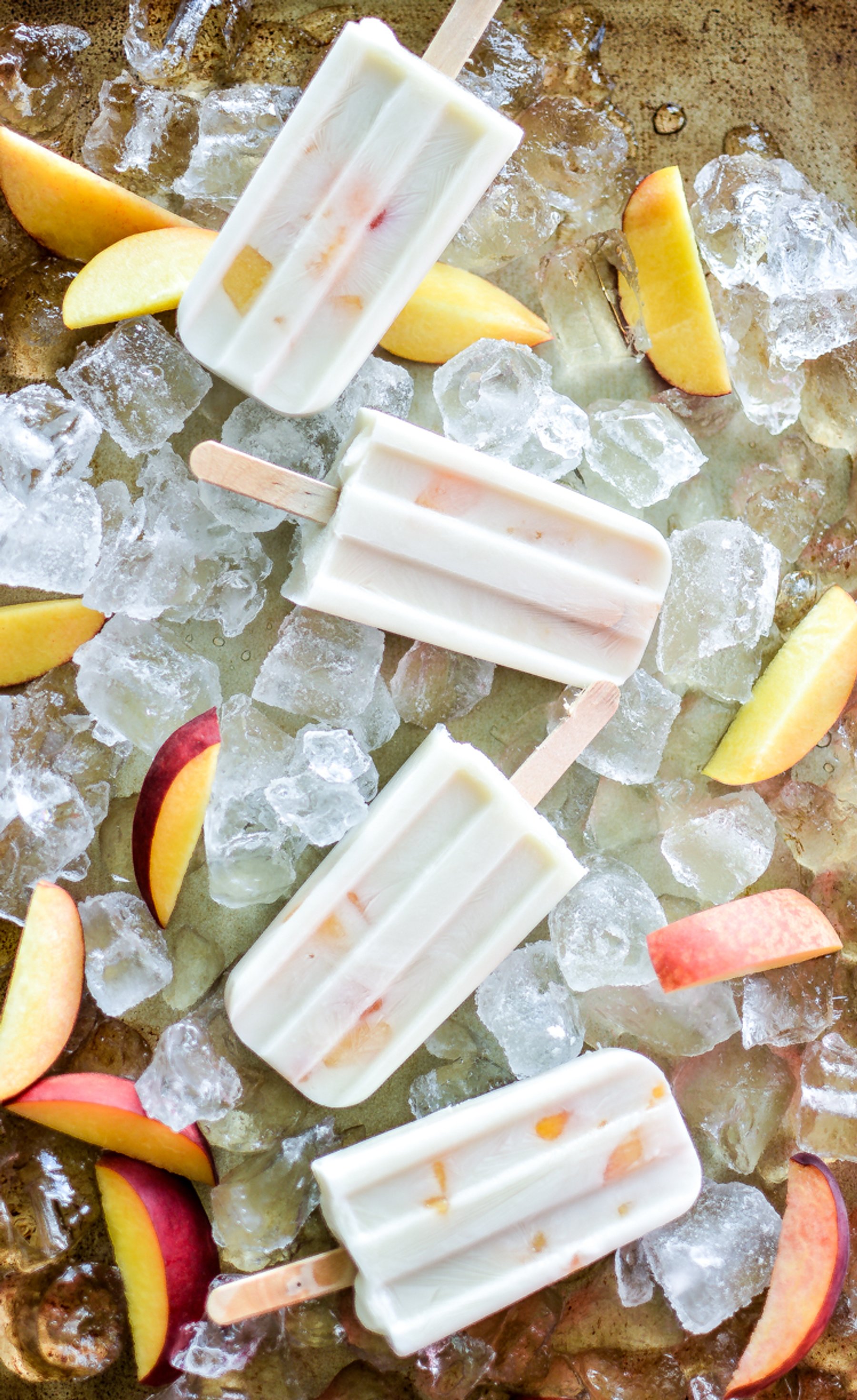 These peaches and cream ice pops are vegan, healthy and the perfect recipe to beat the summer heat!