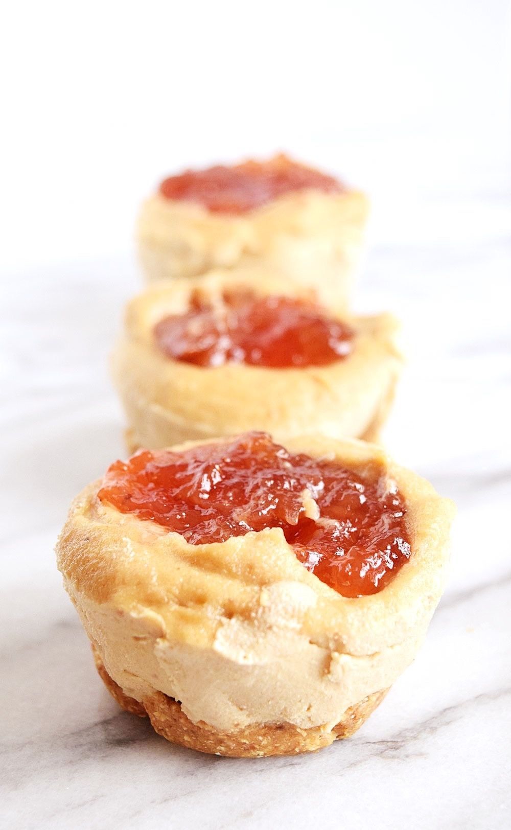 Vegan peanut butter and jelly cheesecakes are a rich and creamy version of your favorite childhood sandwich! No baking required, made with just 5 healthy ingredients, gluten free and naturally sweet.