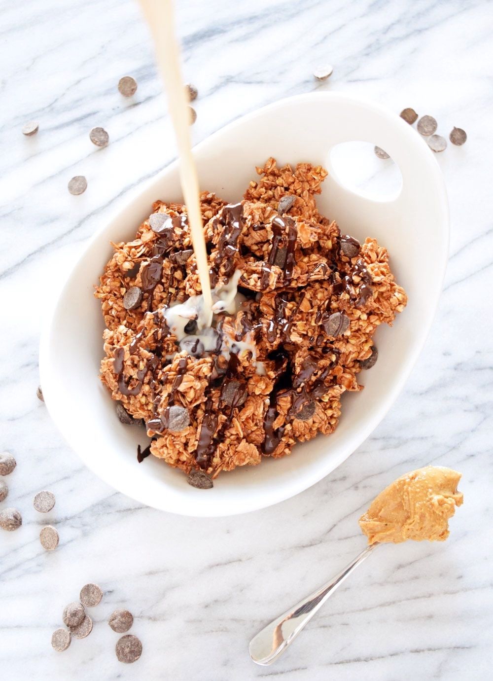 This vegan peanut butter cup granola is sweet, crunchy, and full of the always dreamy combination of peanut butter and chocolate. Made with 5 simple ingredients, gluten free, and fruit sweetened!