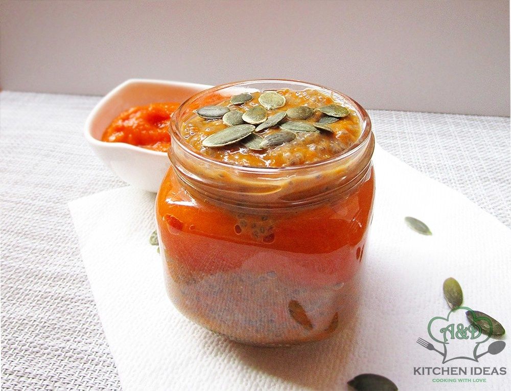 - In a small mason jar (or a small glass) add chia seeds, 2 tablespoons of pumpkin puree, maple syrup, pumpkin pie spice, and nondairy milk. Stir together until combined. Tighten lid (or cover with...